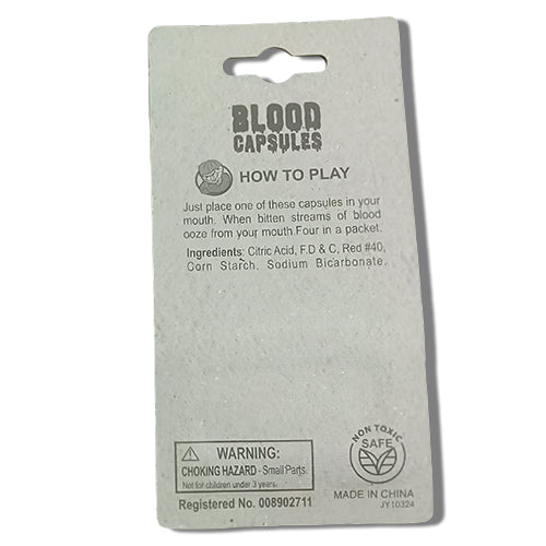 Whether you're a vampire, zombie, or prankster, these Blood Capsules are your secret weapon for jaw-dropping scares and unforgettable moments.