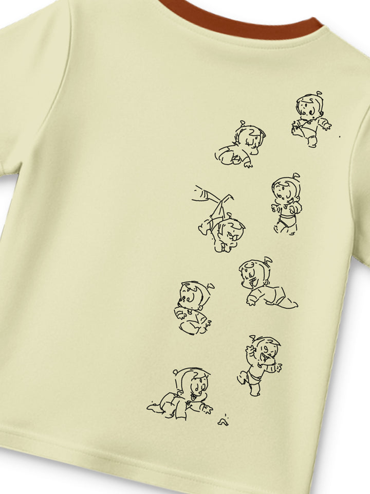 Add a fun twist to your child’s wardrobe with this Boys Cartoon Cotton Blend Regular T-Shirt. Crafted from a soft and breathable cotton blend fabric, this T-shirt ensures all-day comfort while keeping your little one stylish. The cute and colorful cartoon print brings playful energy, making it a favorite for kids. Perfect for casual outings, playtime, or everyday wear.