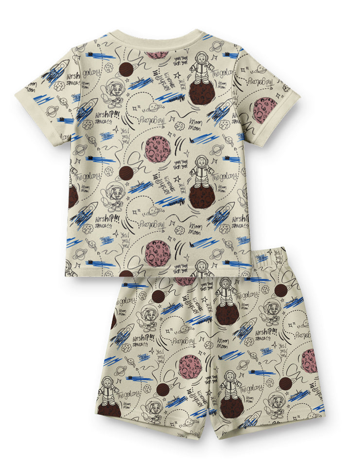 Step into a world of comfort with the Chhota Bheem Galaxy AOP T-Shirt With Shorts Set. Featuring a stylish outer-space all-over print, this set uses quick-dry, airy fabric to keep you feeling fresh during any activity. Great for school, outings, and summer play.