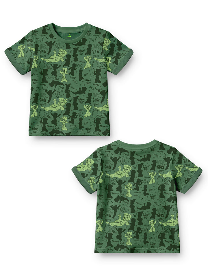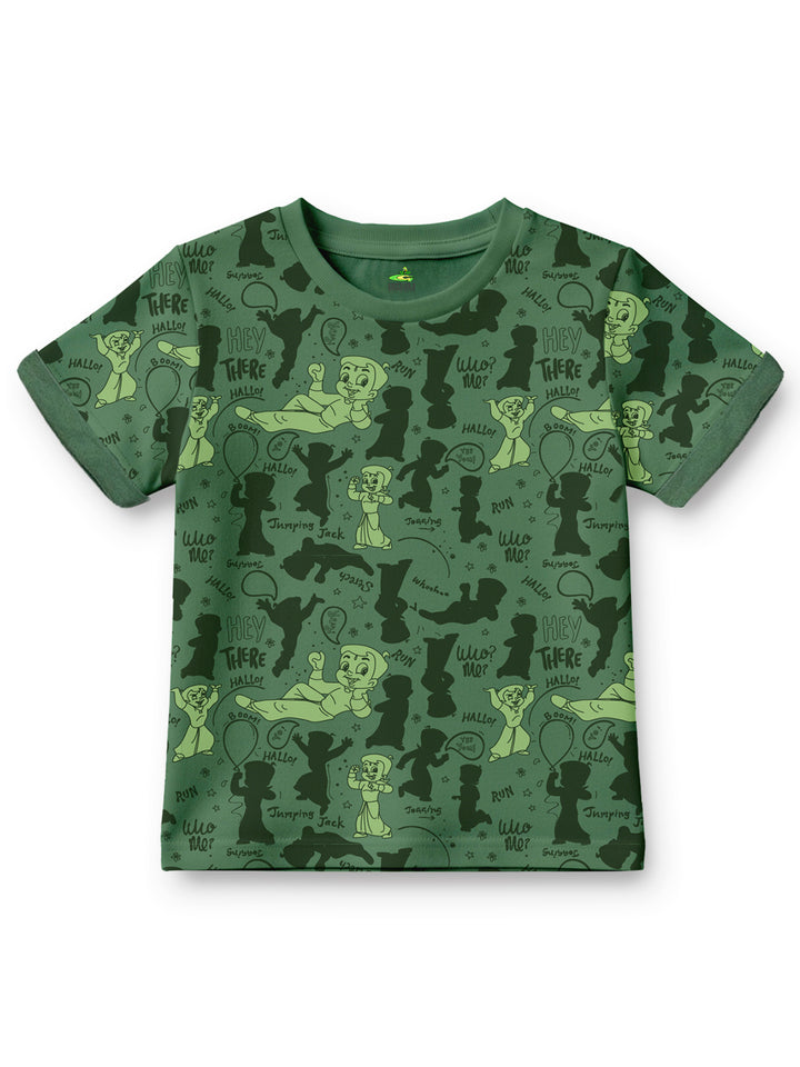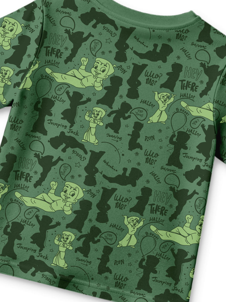 Add a splash of fun and style to your child’s wardrobe with this Chhota Bheem Graphic Printed Round Neck Cotton T-shirt. Designed in vibrant Olive Green, Green, and Orange hues, this tee is a perfect blend of comfort and playful charm. The bold full-front Chhota Bheem graphic print makes it a must-have for little fans of the adventurous hero.