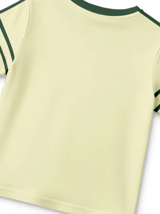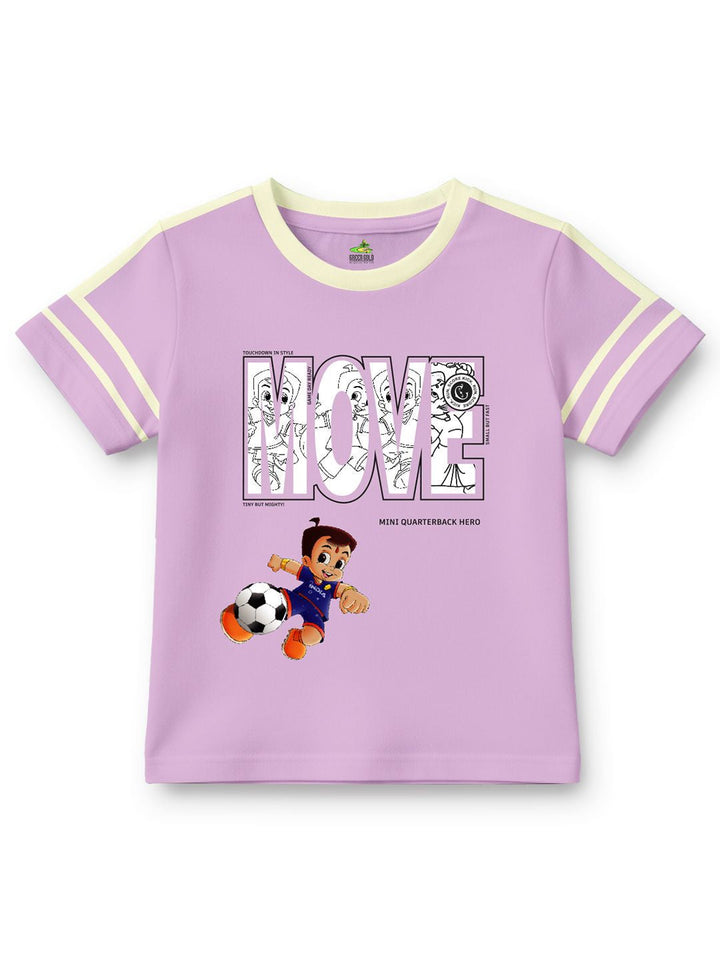 Add a cool and trendy vibe to your boy’s wardrobe with this Chhota Bheem Move Graphic T-shirt available in two stylish color options – Purple & White and Cream. Made from soft cotton fabric with a knitted weave, it offers breathable comfort and durability for everyday wear.