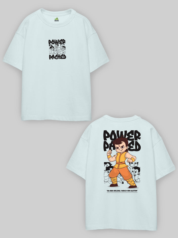 Featuring a bold and electrifying POWER PACKED Chhota Bheem graphic, this oversized tee delivers both comfort and a powerful style statement. Whether your little one is running, playing, or just chilling, this tee keeps them looking cool and feeling great.