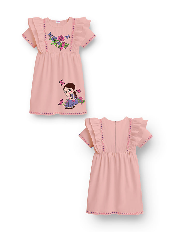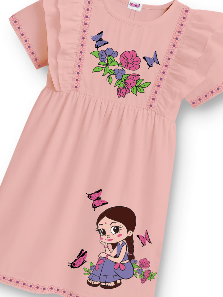 Let your little one twirl in charm with the Chutki Butterfly Bloom Frock in Coral Pink. Featuring soft, breathable fabric and a playful butterfly-themed design, this frock brings comfort and cuteness together. Perfect for day outings, parties, and festive celebrations.