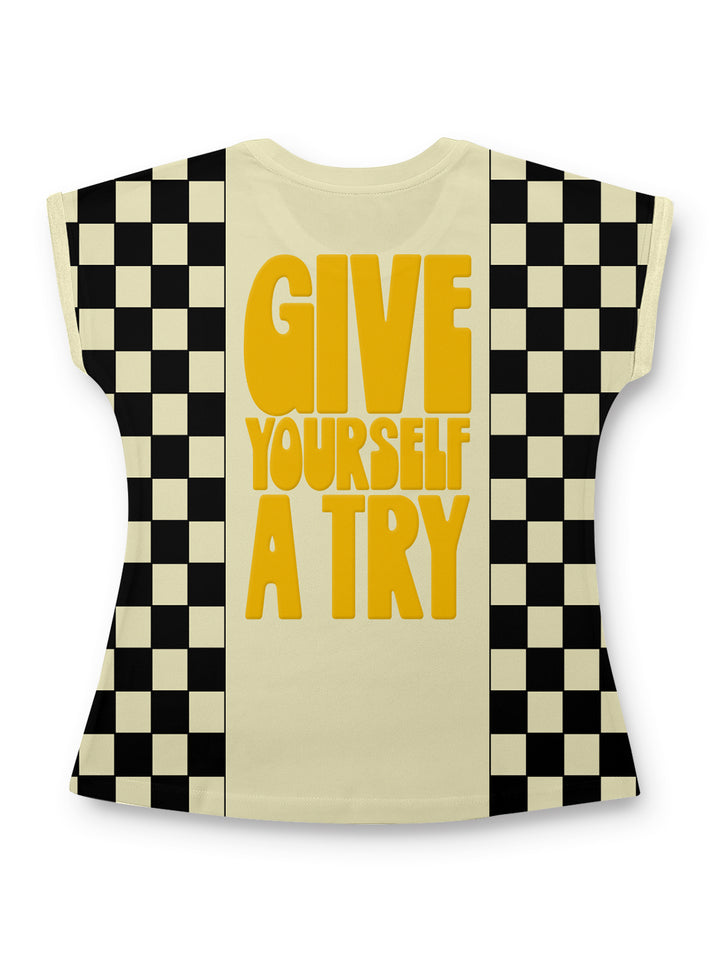 Design: “GIVE YOURSELF A TRY” motivational slogan print