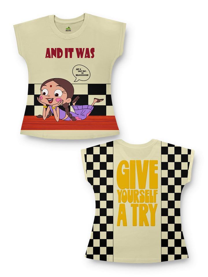 “GIVE YOURSELF A TRY” Girls Cream T-Shirt
