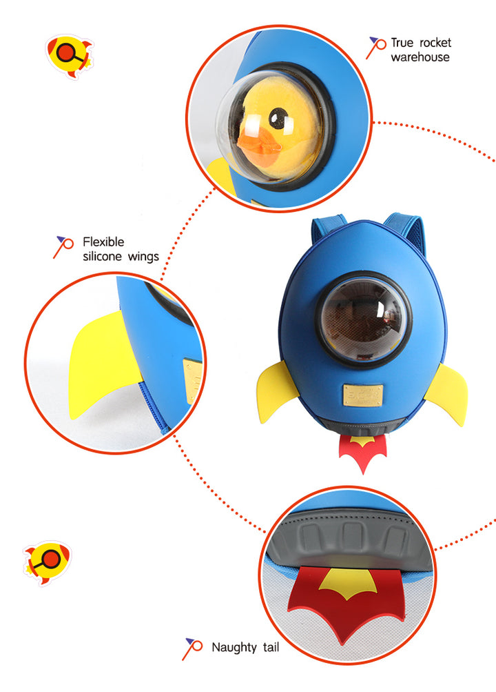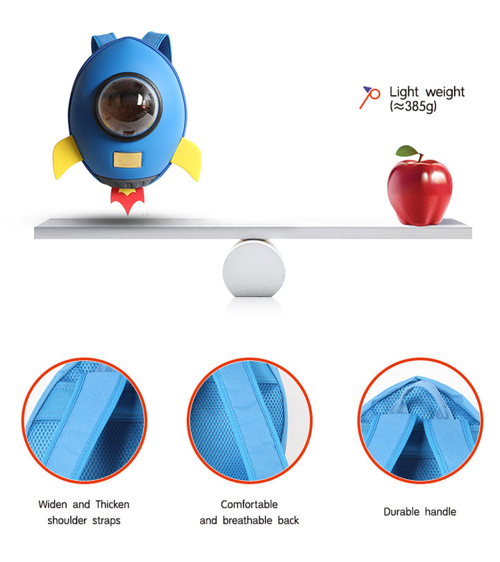 Blast off into adventure with the Rocket Backpack in Blue – the perfect companion for little explorers! Designed with a fun rocket shape and a cute teddy dome window (to let toys peek out on the journey), this backpack brings imagination to life.
