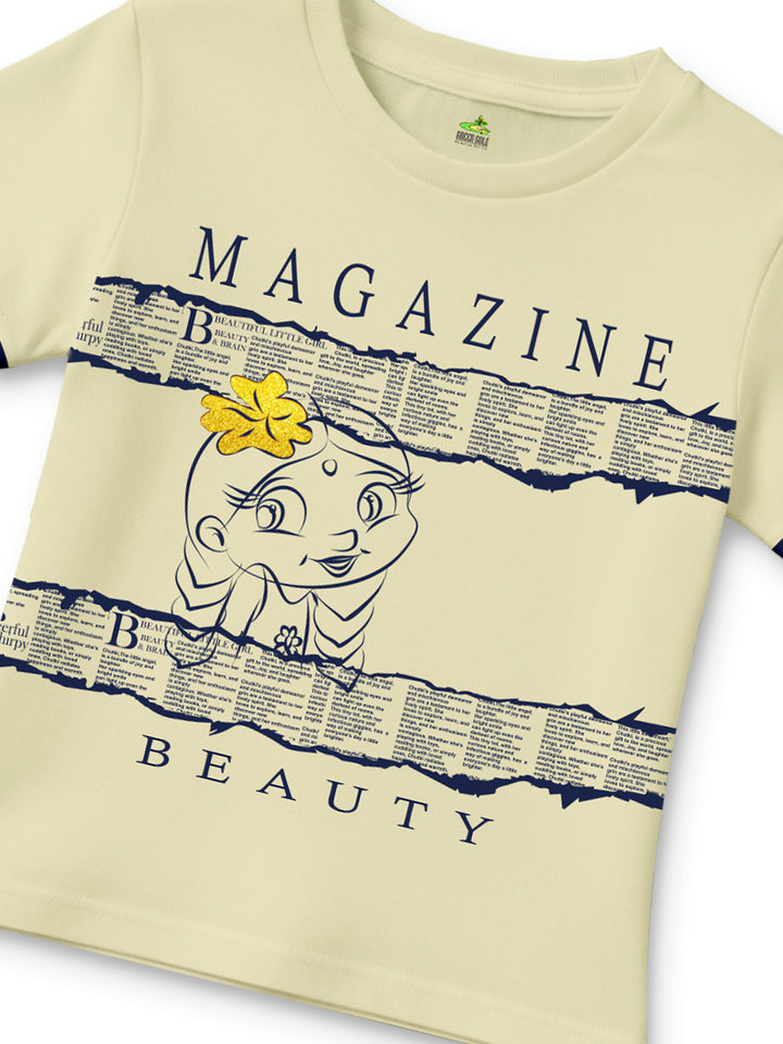 “MAGAZINE BEAUTY” Girls Cream T-Shirt