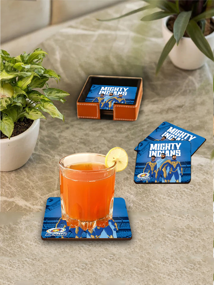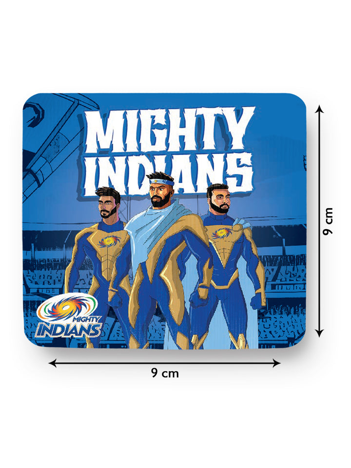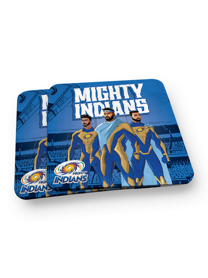 Celebrate the unstoppable spirit of your favorite cricket heroes with the Mighty Indian Coaster Set. Featuring superhero versions of the iconic Mumbai Indians players, this set of 2 coasters brings bold energy to your table while keeping surfaces clean and safe.