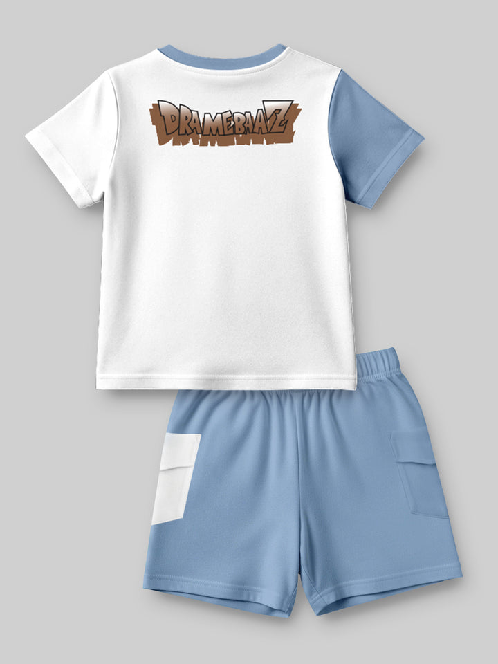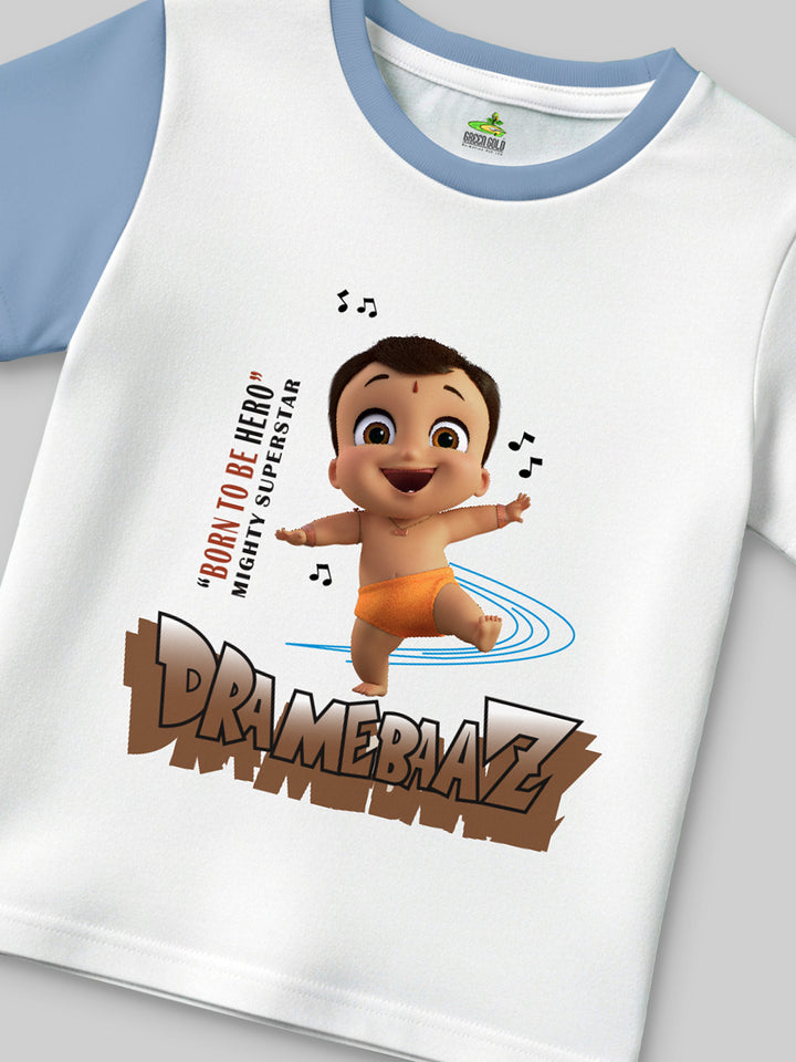 Mighty Little Bheem DRAMEBAZZ Kids Clothing Set – Off White T-Shirt with Surf Blue Shorts